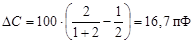 Два одинаковых плоских воздушных конденсатора ёмкостью по 100 пФ каждый соединены в батарею последовательно. Определить, на сколько изменится ёмкость батареи, если пространство между пластинами одного из конденсаторов заполнить парафином с диэлектрической проницаемостью 2.