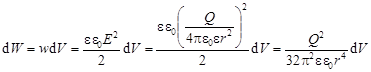 Энергию поля, заключенную в сферическом слое, будем находить через объемную плотность энергии, равную по определению