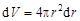Поскольку поле сферически симметрично, в качестве d V следует брать тонкий шаровой слой, концентрический данной сфере, с внутренним радиусом r, внешним радиусом (r + d r), тогда в пределах этого слоя значение напряженности можно считать одинаковым и равным (3). Объем слоя можно найти, перемножив площадь сферы на его толщину, так как слой тонкий: