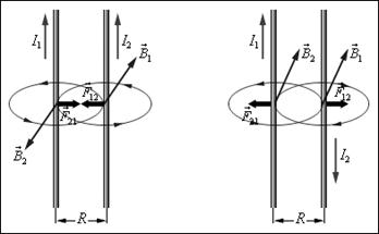 Рис. 3.1. Магнитное взаимодействие параллельных и