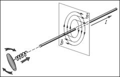 Рис. 3.3. Магнитное поле прямолинейного проводника с током