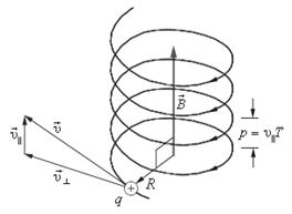 Рис. 3.9. Движение по винтовой линии заряженной частицы в магнитном поле