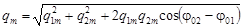 Амплитуда результирующего колебания заряда, возникающего в двух разных контурах и складываемого на одной нагрузке, (складываемые колебания одного направления и одинаковой частоты)
