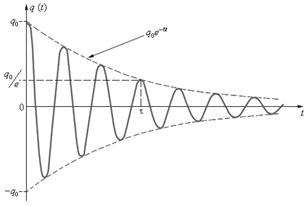 Рис. 4.2. Изменение заряда во времени при слабых затухающих колебаниях