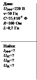 В цепь переменного тока напряжением 220 В и частотой 50 Гц включены последовательно емкость 35,4 мкФ, активное сопротивление 100 Ом и индуктивность 0,7 Гн. Найти силу тока и падение напряжения на емкости, активном сопротивлении и индуктивности.