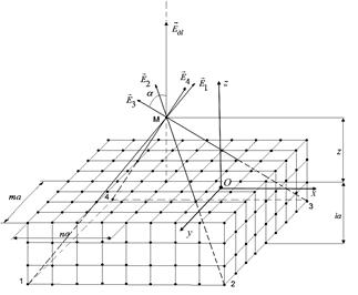 . Для расчета напряженности электрического поля плоскости с дискретно распределенными зарядами в этом случае получим выражение: