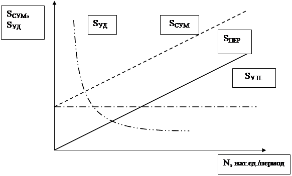 Рисунок 6. 2 – Зависимости издержек производства (себестоимости) от масштабов производства