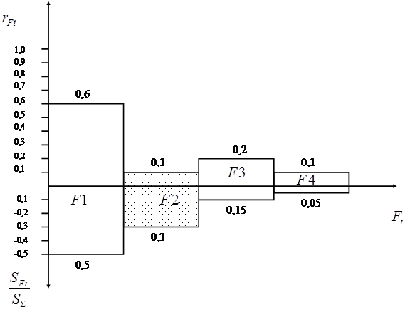 Пример: анализируется функция, которая реализуется через три функции более низкого ранга с соответствующими значимостями.