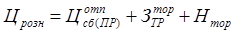 - коэффициент торговой наценки, %, устанавливается торговой организацией, но в пределах, регулируемых государством.