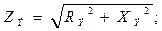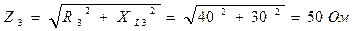 д) Определяем активное, реактивное и полное сопротивление цепи: