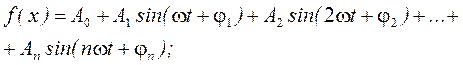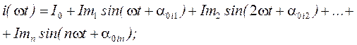 На основании теоремы Фурье, любую периодически меняющуюся функцию можно представить в виде ряда, состоящего из суммы, включающей постоянную составляющую и гармоник (синусоид) различных частот, амплитуд и начальных фаз, при этом частоты кратны основной.