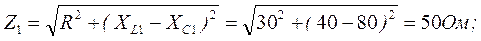 L=127 мГн, С=40 мкФ, f=50 Гц,