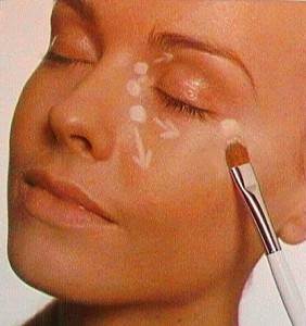 Коррекция вокруг глаз – очень тонкая кожа, поэтому наносить очень аккуратно, чтоб не повредить, наносить тонким слоем, чтоб не подчеркнуть морщинки. Осветление кожи вокруг глаз дает хороший результат для глаз глубокопосаженных, опущенных век, с темными кругами под глазами, для маленьких глаз. Глаза сразу станут ярче.