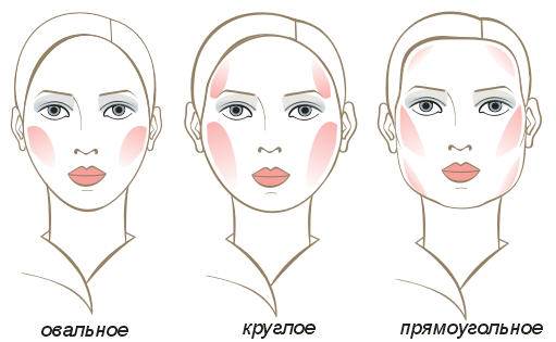 Если вы используете пудру темных оттенков, то нужно покрыть ими наиболее выступающую боковую часть скул. А если пользуетесь темными румянами, то постарайтесь учитывать определенный рисунок. Для визуального исправления ромбовидной формы лица можно использовать рисунок треугольника. Тщательно растушевывайте румяна на уровне глаз – это отвлечет внимание от угловатой формы лица. Уравновесить пропорции помогут правильно расставленные акценты в макияже. Например глаза и губы.