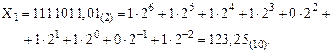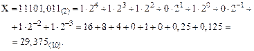 Пример 4. Переведем в десятичную СС двоичное число X = 11101,011: