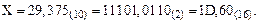 Пример 3. Переведем неправильную дробь X = 29,375(10) в двоичную и шестнадцатеричную СС с точностью четыре знака после запятой: