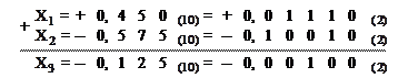 В естественной форме двоичные числа представляются последовательностью цифр, разделенной точкой на целую и дробную части. Весовые коэффициенты разрядов здесь фиксированы, поэтому и положение точки фиксировано. Наиболее часто цифровые устройства с фиксированной точкой оперируют с двоичными числами, меньшими единицы, у которых точка фиксируется перед старшим разрядом. Для знака числа выделяется дополнительный разряд. Знак числа веса не имеет. Например, двоичное число X = – 0,10110 в разрядной сетке запишется в виде: