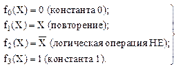 Как отмечалось выше, для одного аргумента можно составить четыре элементарные логические функции. Логические функции одного аргумента (таблица 3) представляются следующими выражениями: