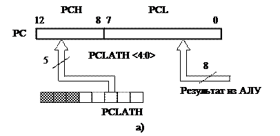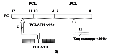 Рисунок 6 – Загрузка счетчика команд командой, модифицирующей PCL (а) и командами GOTO, CALL (б)