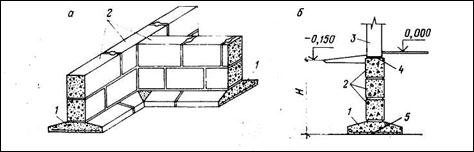 Ленточные фундаменты применяют в основном в бескаркасных зданиях с несущими стенами. Основные элементы сборного фундамента — бетонные блоки-подушки и стеновые блоки (рис. 3).