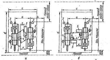 Рис. 1. Расположение двух литьевых машин и оргоснастки на рабочем месте (а – рекомендуемое; б – допустимое):