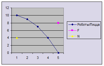 Данная производственная альтернатива характеризуется следующими данными: (возможности производства пиццы и промышленных роботов при полной занятости ресурса).