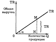Если отложить на оси абсцисс количество продукта, а на оси ординат — совокупную выручку (доход), то зависимость дохода от продукции изображается в форме луча, выходящего из начала координат (см. рис. 7.4).