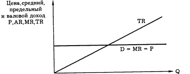 Рис. 7.5. Цена, средний и предельный доход в условиях совершенной конкуренции