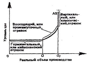 На рис. кривые совокупного спроса и совокупного предложения пересекаются на промежуточном отрезке.