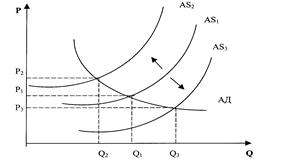 AS1→AS3 — повышаются объемы реального производства, а цены падают.