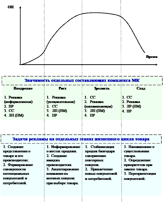 Обычные сроки для интенсивной рекламы или магазина – 2-4 недели; для рекламной кампании по выводу новой торговой марки или ударной кампании, связанной с переформированием имиджа старой марки – от 3 недель до 3 месяцев; для выведения на рынок новой конкурентоспособной марки товара массового спроса часто используется схема «6+4» (в течение первых шести недель формируется известность марки, в следующие четыре – закрепляется ее образ).
