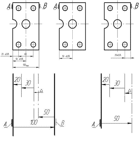 Если технологическая база не совпадает с конструкторской или измерительной базой, технолог вынужден производить замену размеров, проставленных в рабочих чертежах от конструкторских и измерительных баз более удобными для обработки технологическими размерами, проставленными непосредственно от технологических баз.