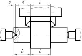В этом случае погрешность базирования не окажет влияния на точность размера l1, но будет влиять на точность размера l2, отсчитываемого от левого торца валика, который служит измерительной базой для данного размера. Здесь l2 может изменяться в связи с погрешностью зацентровки, обусловленной неодинаковой глубиной сверления.