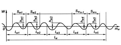 Количественная оценка волнистости производится следующими параметрами: высотой волнистости hW, наибольшей высотой волнистости hWmax и средним шагом волнистости SW.