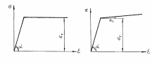 Для расчетов чаще всего используют схематизированные кривые деформирования, показанные на рисунке. Кривая без упрочнения используется для описания сравнительно небольших пластических деформаций малоуглеродистых сталей, имеющих площадку текучести. В основе определения остаточных напряжений лежит известная в теории пластичности теорема о разгрузке. (Генки, 1924 г.) Остаточные напряжения равны разности между истинными напряжениями в упругопластическом теле и теми напряжениями, которые создавались бы в нем при предположении об идеальной упругости материала