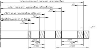 l Схемы образования промежуточных размеров при обработке наружных и внутренних цилиндрических поверхностей показаны на рисунках. Используя взаимосвязь между межоперационными припусками на обработку и полями допусков, устанавливаемых на промежуточные размеры, можно рассчитать предельные размеры заготовки при выполнении любого технологического перехода, используя следующие соотношения.