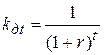 Дисконтирование предполагает учет снижения экономической ценности (покупательной способности) капитала по мере удаления от момента его вложения. Для учета этого фактора в расчеты вводится коэффициент дисконтирования, определяемый по формуле: