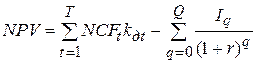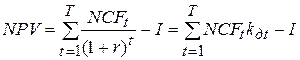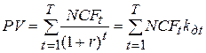 Если инвестиции осуществляются не единовременно, а в течение ряда лет, формула чистой настоящей (текущей) стоимости принимает вид: