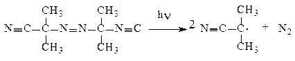 , Большей реакционной способностью обладает тогда как свободный радикал 2-цианоизопропил, образующийся в результате фотофрагментации 2,2’-азо бис (бутиронитрила), обладает большей реакционной способностью: