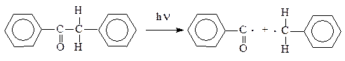 Образование свободных радикалов в случае реакции фотоиндуцированного отрыва атома водорода происходит вследствие взаимодействия возбужденной молекулы инициатора с донором водорода
