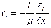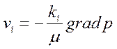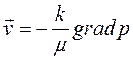 и закон фильтрации, который при небольшой скорости фильтрации имеет вид закона Дарси