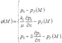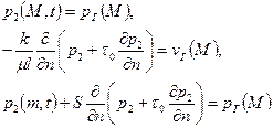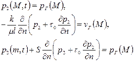 Начальное и граничные условия, которые необходимо присоединить к уравнению (2.54), обладают некоторой особенностью. Прежде всего ясно, что граничную задачу, связанную с уравнением (2.54) следует рассматривать относительно одного из давлений –