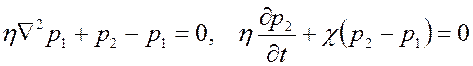 , среда с двойной пористостью переходит в чисто пористую и уравнения (2.54) и (2.33) совпадают.