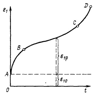 На рис. 16 показана типичная кривая ползучести