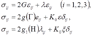соответственно при упругой деформации изотропного тела [см. формулу (2.74)]; при упругопластической деформации изотропного тела [см. формулу (2.77)]; при ползучести среды [см. формулу (2.91)]. Возможны уравнения другого вида, связывающие компоненты
