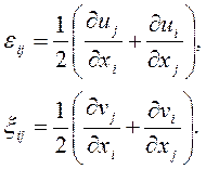 - компоненты тензоров деформаций и скоростей деформаций; связанные соответственно с компонентами перемещения