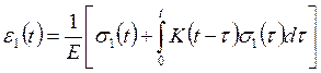 Ограничимся лишь уравнением состояния линейной теории наследственной ползучести при одноосном упругом сжатии (растяжении) образца переменным во времени напряжении