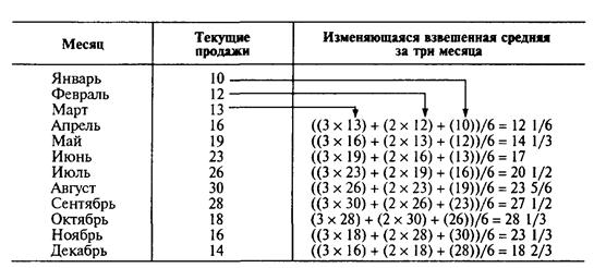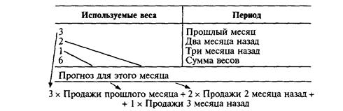 Результаты прогнозирования на базе взвешенной средней показаны в следующей таблице.