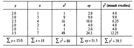 В примере 10 мы показали взаимосвязь между заказами строительной компании и уровнем заработной платы. Рассчитывая коэффициенты корреляции для указанных данных, мы можем только суммировать один расчетный столбец (для y2) и затем обращаться к уравнению для г