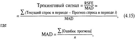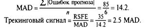 Трекинговый сигнал рассчитывается как сумма ошибок прогноза (К5РЕ), деленная на среднее абсолютное отклонение (МАО):